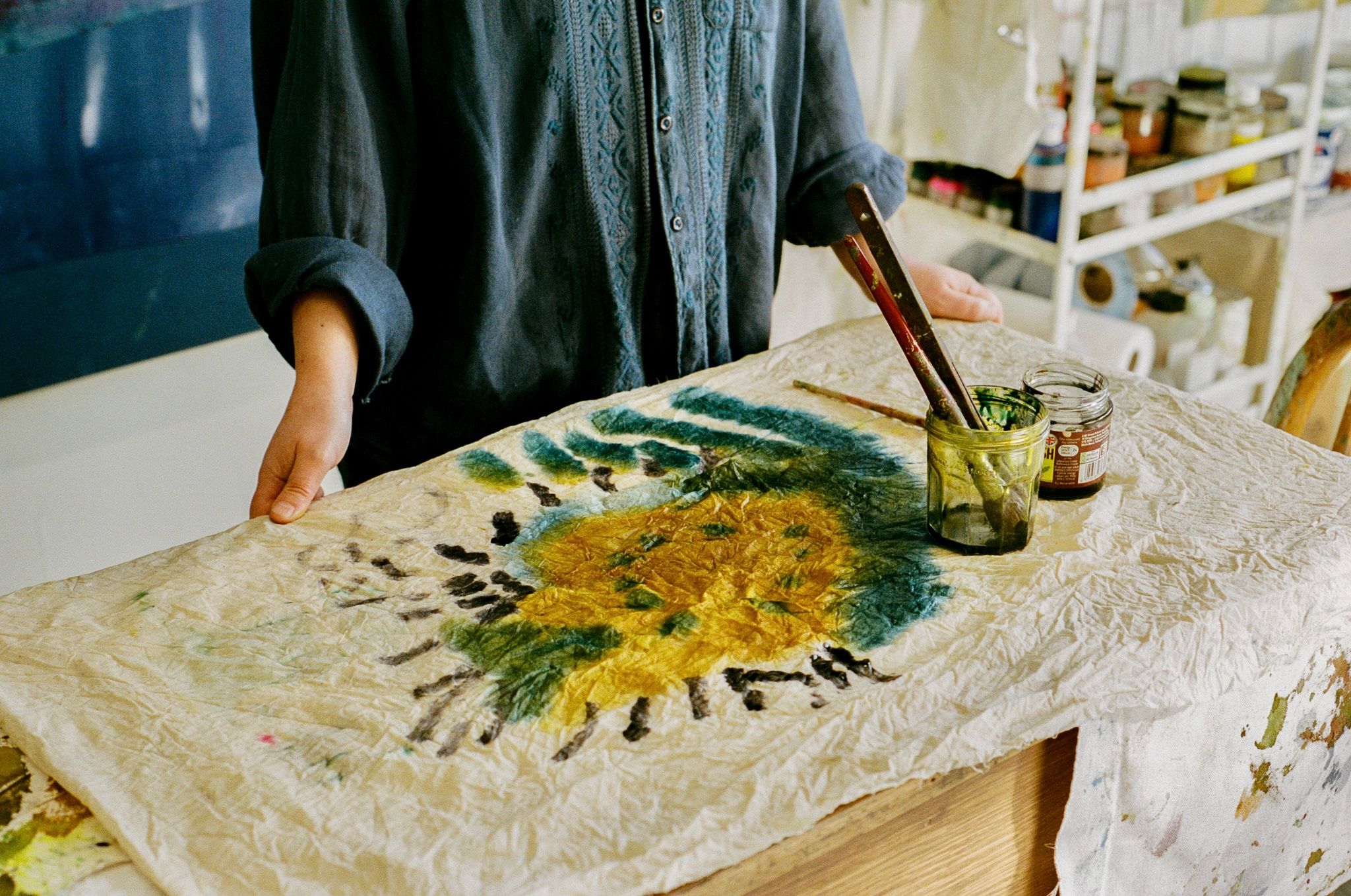 Working with dyes means giving up a lot of control. They are difficult to manipulate but I’ve come to see that uncertainty as a strength. Allowing chance into the process opens up outcomes I wouldn’t arrive at through intention alone. Working with this medium encourages a more intuitive way of working, where layers build over time and the work can shift between being dense and sparse. Often I’m surprised by the results, and those moments of surprise feel vital- they lead to discoveries that feel alive rather than overly resolved.