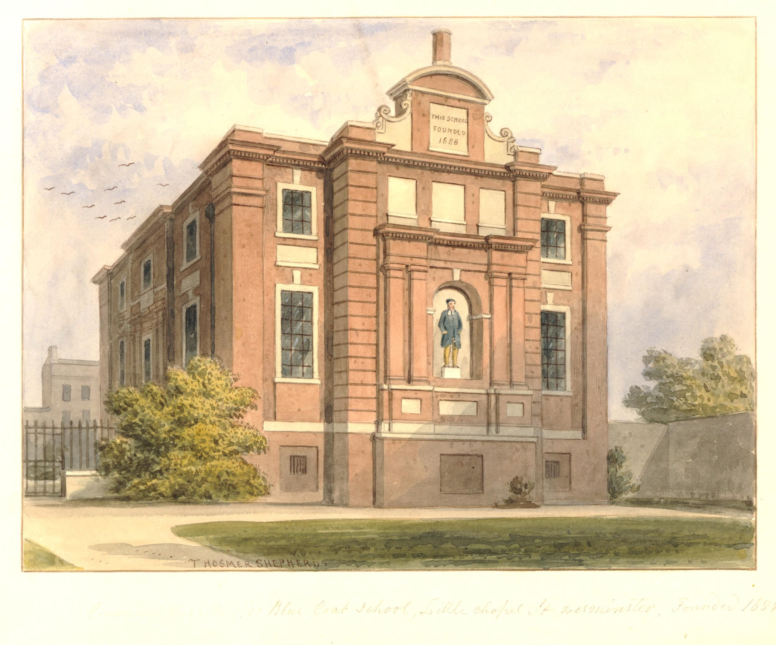 Founded in 1688 and rebuilt in 1709 on land leased from Westminster Abbey, The Blewcoat School was the first of its kind — a charity school providing free education, clothing and medical care for local boys in Westminster. The pupils’ distinctive blue coats mirrored the statue that still stands proudly on the building’s façade, a lasting symbol of its purpose and spirit.