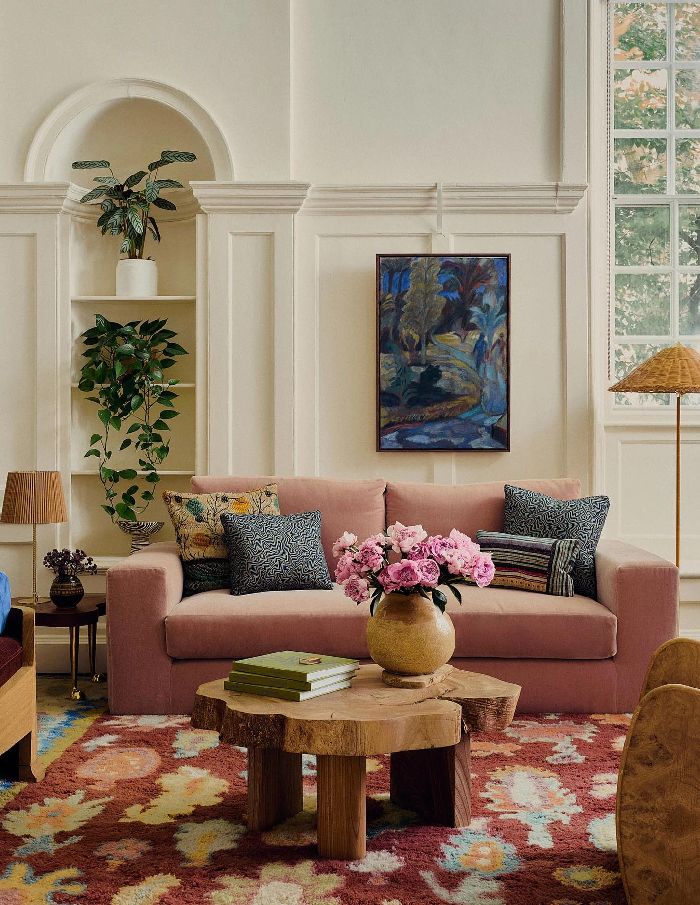 Repetition is what makes colour combinations feel intentional. Rather than matching fabrics exactly, allow tones to reappear in different ways across a room — echoed in upholstery, cushions, and rugs.